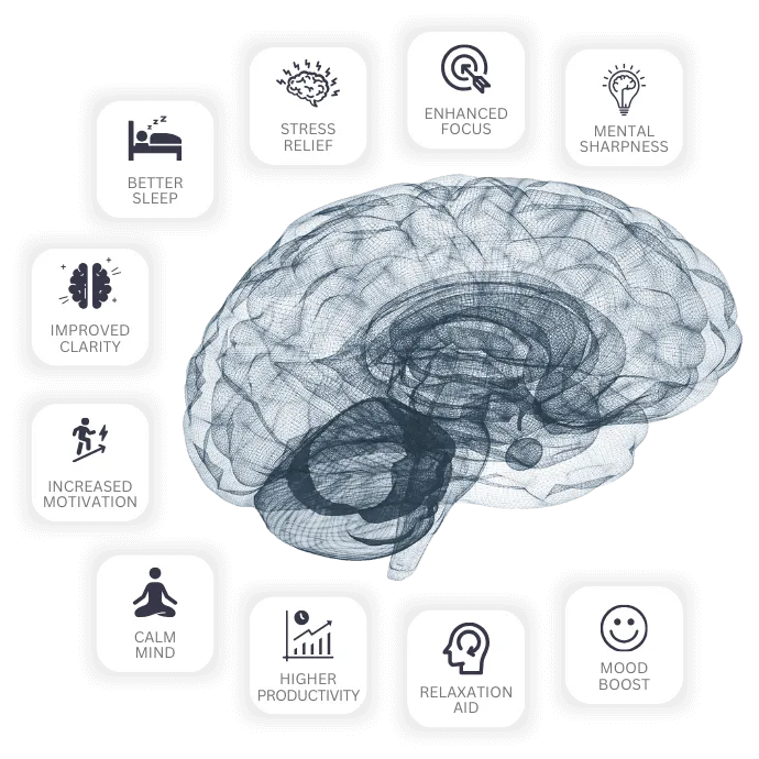 Target key areas: sleep, relaxation, focus, brainpower, happiness, motivation, and energy
